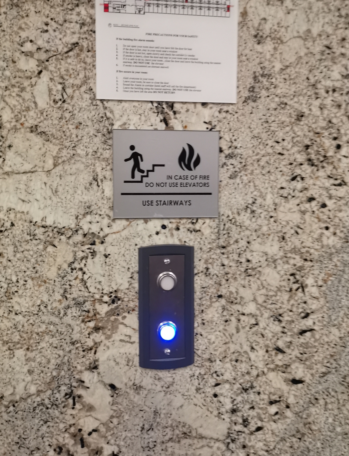 準備下樓去櫃檯check out ,然後盯著電梯按鈕,哈哈!現在是怎樣,大家都不想按按鈕(被電到怕了)