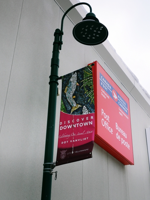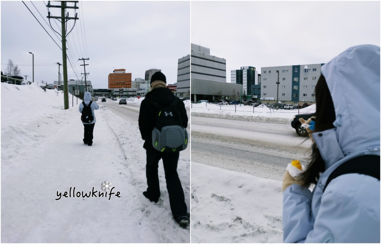 在黃刀鎮的最後一天,天氣雲,溫度零下4度C,我們在市區閒晃、寄明信片、買小禮物~