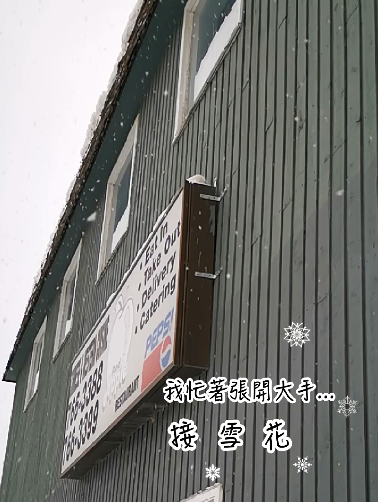 最後一天在黃刀鎮~是個下雪的日子!開心的在中國餐廳外面接雪花